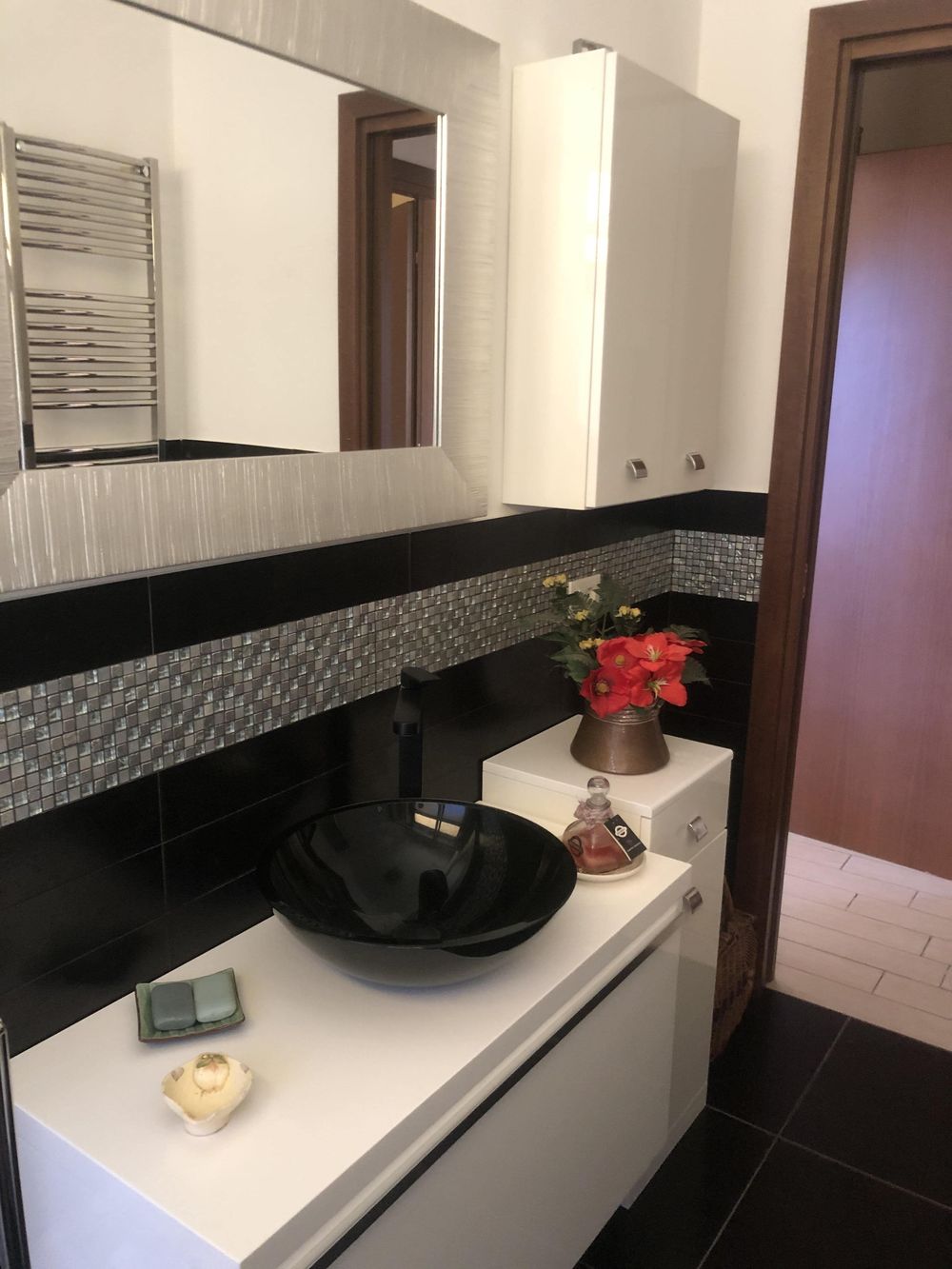 The Exclusive Suite Gelsomino is two-roomsapartment, minimalist style, highly functional, spacious 75 sqm , with kitchen equipped with 4 hob cooker, electric oven, dishwasher and large "old style" fridge with freezer, 1 living room with LED TV and comfortable duble sofa bed + 1 single bed, 1 double bedroom and 1 bathroom with washbasin, toilet, washing machine and Jacuzzi shower. FREE WIFI,air condioning, private and spacious garden and terrace totally equipped with table, chairs, sun loungers.
